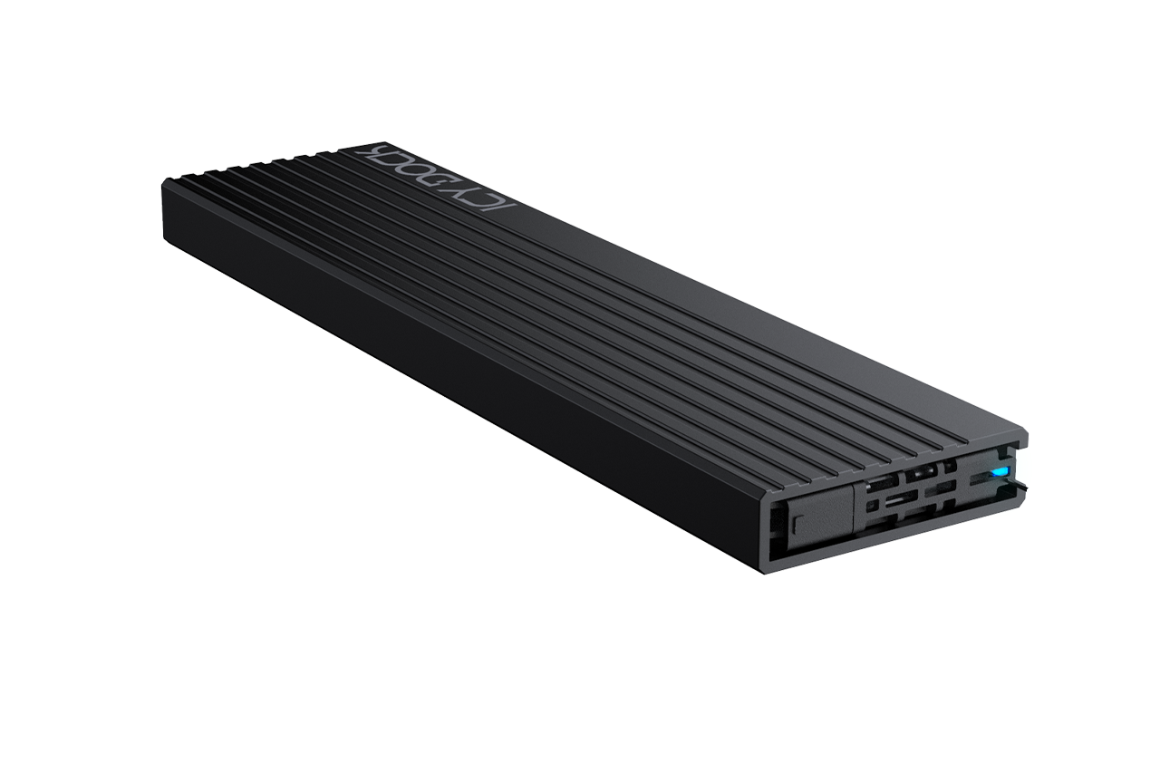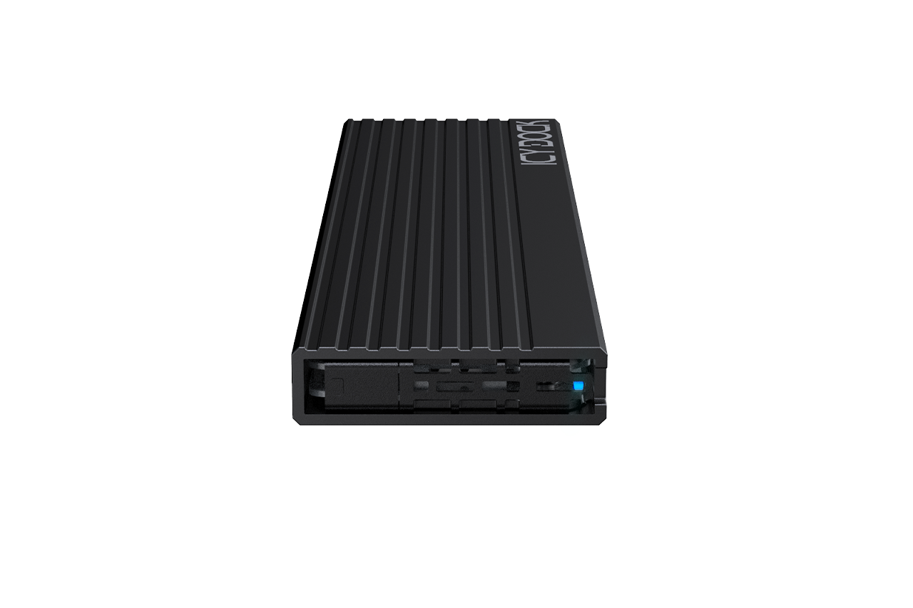 Wyposażony we wskaźnik LED pokazujący zasilanie i status dostępu SSD.