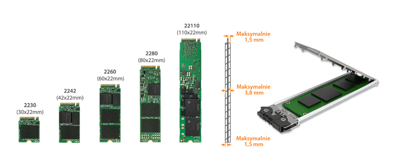 Obsługuje 1x M.2 NVMe SSD (2230/2242/2260/2280/22110)