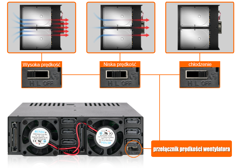 | Chłodzenie dysków: | 2 x wentylator 40mm |