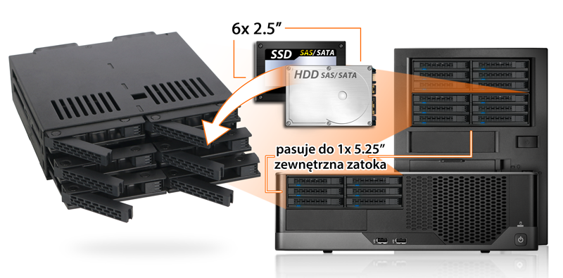 | • | Idealne rozwiązanie dla zaawansowanych użytkowników, integratorów systemów oraz zastosowań wymagających kompaktowego, 6-zatokowego rozwiązania hot-swap dla dysków 2.5" |