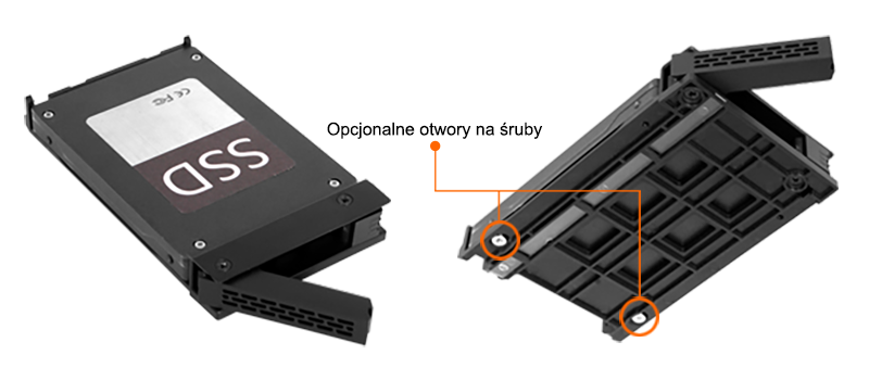 | • | Opcjonalne otwory montażowe na spodzie dla zwiększonej stabilności dysków |