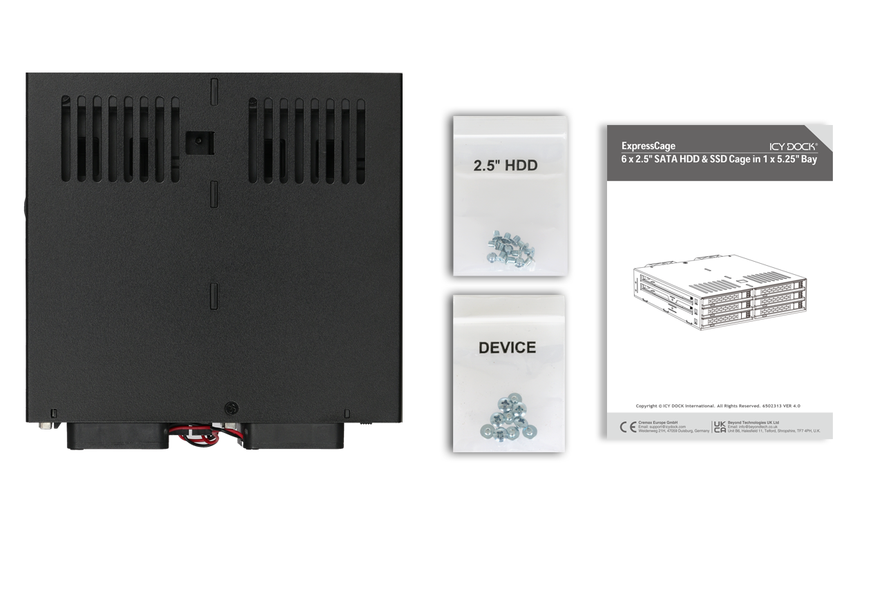 | • | Obsługuje do 6 x 2.5" dysków SATA HDD lub SSD w jednej zatoce 5.25" |