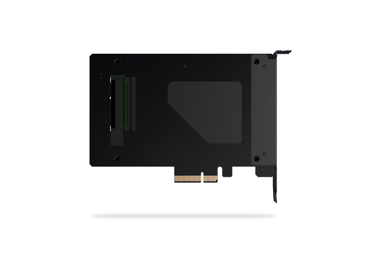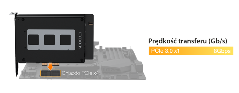 | • | Interfejs PCIe x4 dla zasilania i transmisji danych, eliminujący potrzebę dodatkowych kabli |