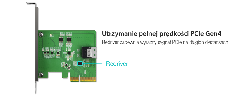| • | Zintegrowany redriver PCIe Gen4 dla zwiększonego zasięgu sygnału |
