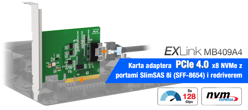 | Prędkość transferu: | PCIe 4.0 x8 do 128Gb/s |
