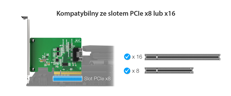 | Interfejs hosta: | 1 x złącze PCIe x8 |