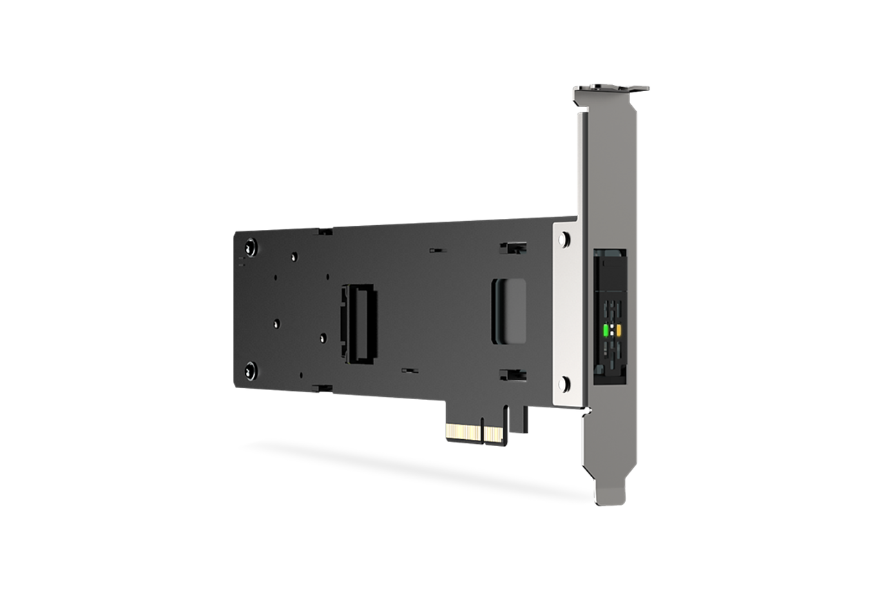 Aby zapewnić optymalną wydajność, zdecydowanie zaleca się instalację adaptera PCIe typu drive enclosure w gnieździe PCIe znajdującym się najbliżej CPU. Pozwala to zminimalizować fizyczną odległość transmisji sygnału, znacząco ograniczając ryzyko jego degradacji i zapewniając stabilną, spójną wydajność oraz oczekiwane prędkości transferu.