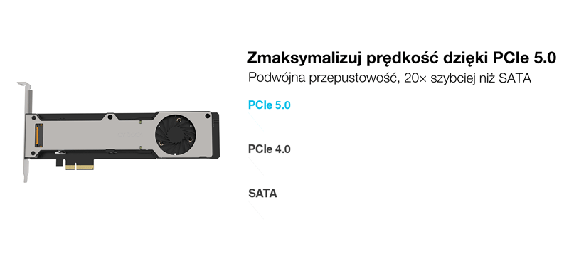 | • | Interfejs PCIe 5.0 x4, do 128Gb/s na dysk SSD |